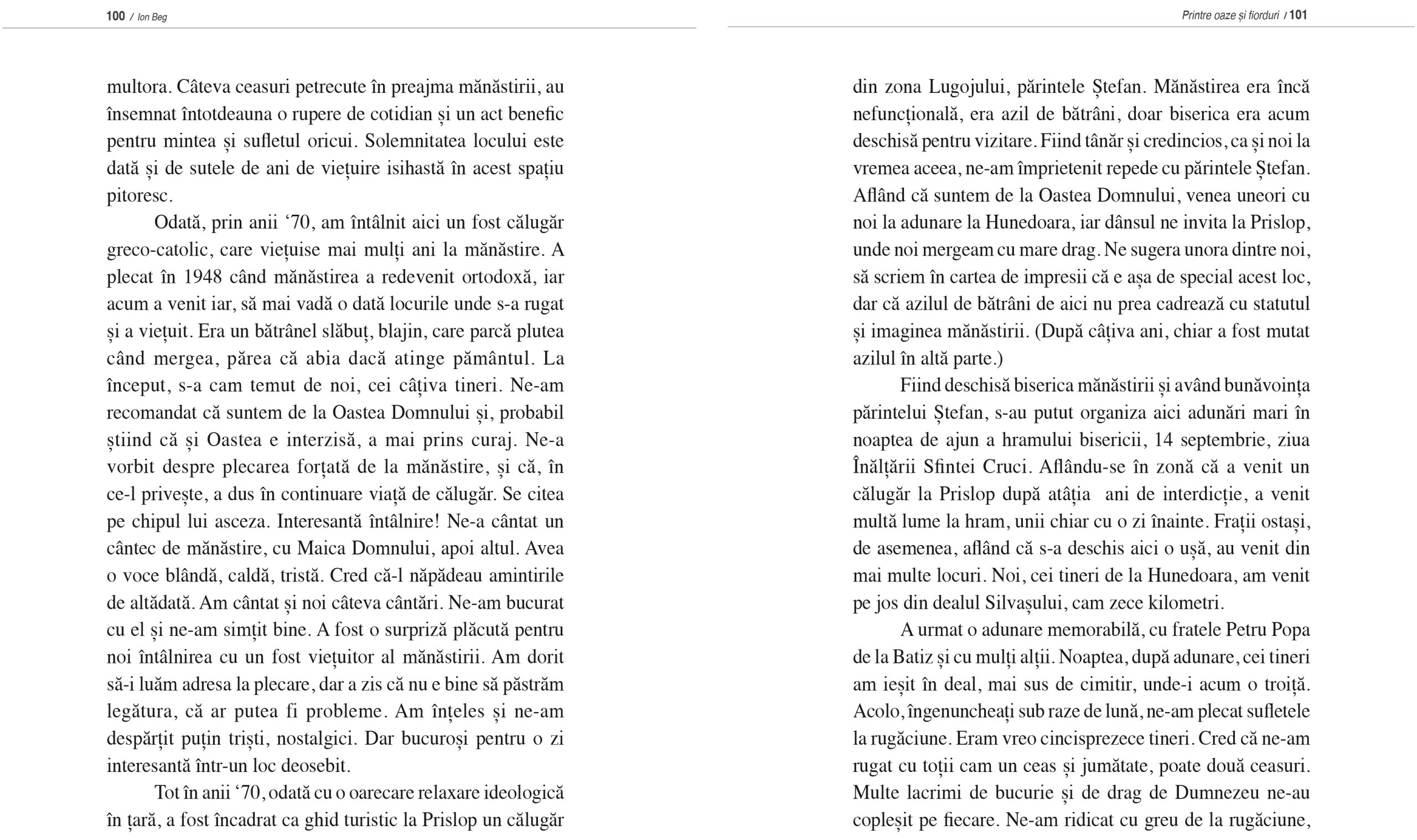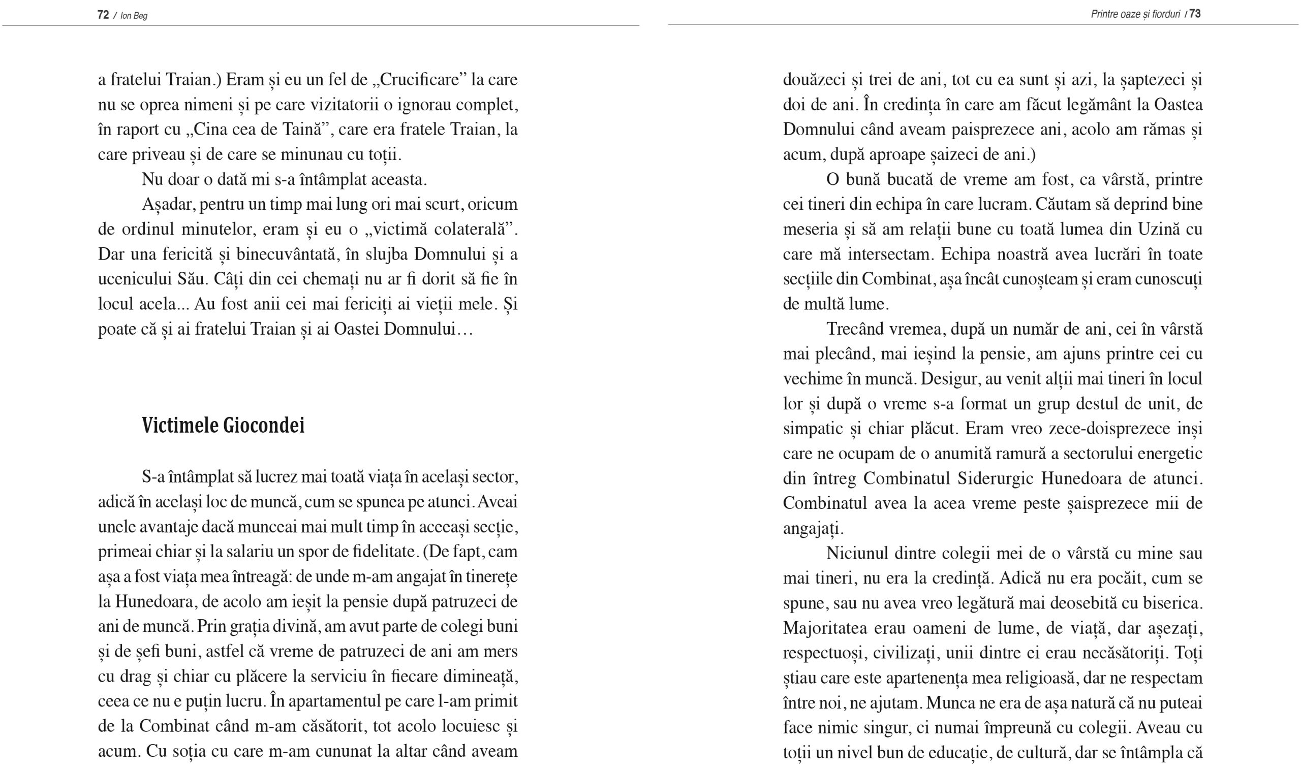 Sintagma biblică “Toate lucrurile își au vremea lor” ne spune că fratele Nelu Beg a trăit și trăiește într-o lume a cărei “nemarginiri” se află într-o continua trasfoarmare, schimbare.